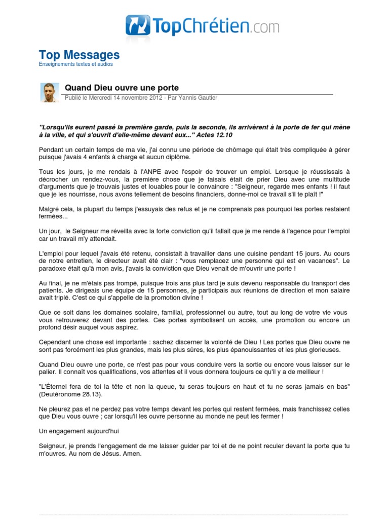 Application Name: Yannis Gautier Quand Dieu Ouvre Une Porte Le Gospel Dieu