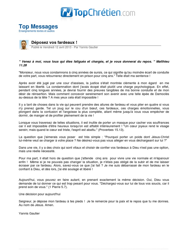 Application Name: Top Messages Deposez Vos Fardeaux Religions Et Croyances